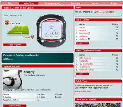 This prediction game is one of the successors of the EURO 2008 betting game Neopoly developed for bundesliga.de. This time the new Champions League season 2008/2009 is covered.