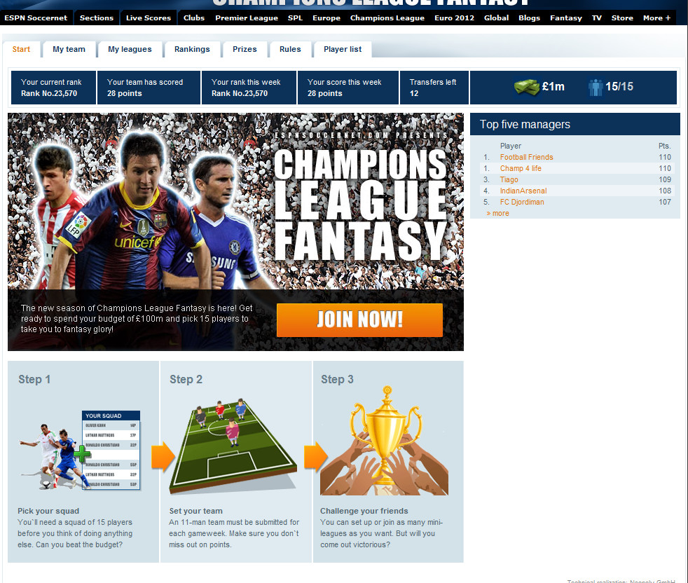 ESPN Champions League Fantasy 2010/11 Fantasy manager about the Champions League
