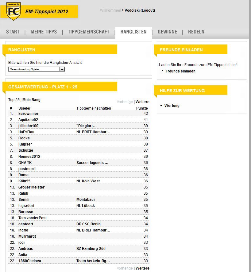 FC Deutsche Post Euro Predictor Internal EURO 2012 predictor game