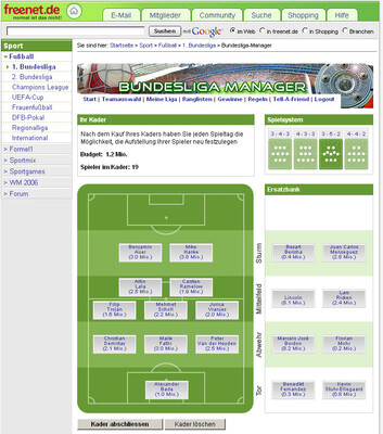 Freenet Bundesliga Manager Fantasy manager for the German portal