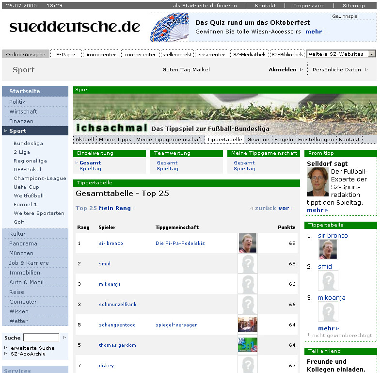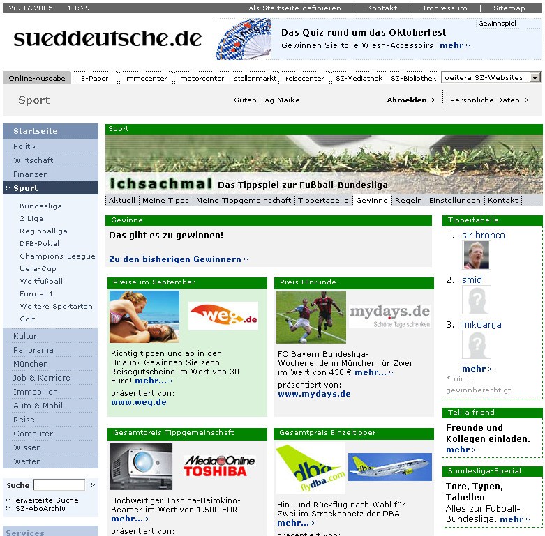 Covering the German Bundesliga, visitors of sueddeutsche.de can bet on the Bundesliga match results.