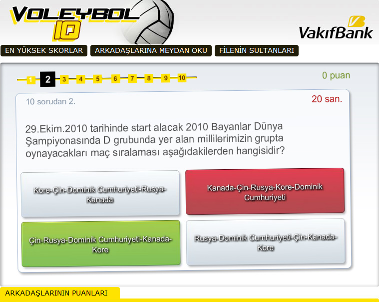 Facebook-Quiz on the topic of Volleyball for the Turkish client NTVspor.