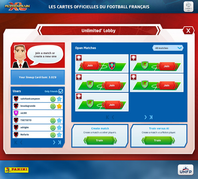 Once the user has positioned his player card in his desired lineup, you can start the actual game. You can choose between three game modes – unlimited play with up to 19 cards, playing with 8 random cards and 2 users against 2 users.