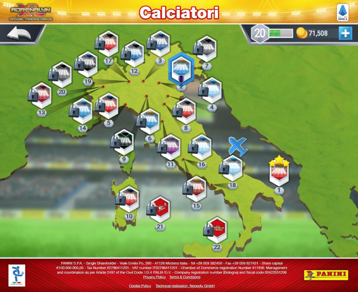 This year’s digital Panini Adrenalyn XL trading card game for Serie A comes with the new Beginners mode which allows kids to play without registration. The online game provides the two gamemodes Classic and Evolution, both modes have 1 on 1 matches and tournaments to compete with other players and Soloplayer matches with AI opponents.