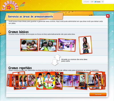 For the fans of the Brazilian telenovela ‚Carrossel‘ Neopoly launched 2013 in analogy to the printed album the Virtual Sticker Album. Users are able to collect the stickers of their favourite actors and special scenes of the telenovela.