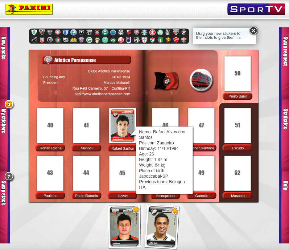 Another version of Neopoly’s new Virtual Sticker Album, this time for the Brazilian Campeonato 2011. Users can collect and trade virtual stickers of the CB 2011 Liga Brazil.