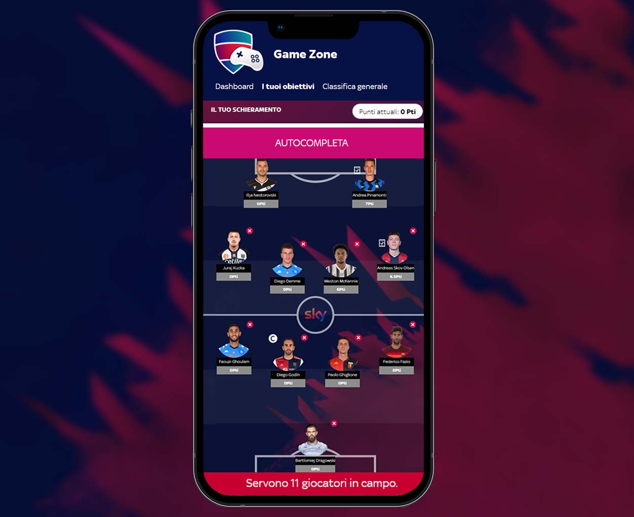 Follow along real matches with your own team and collect points to climb the ladder in the Italian fantasy manager. Enter the Sky Gamezone and access this game along others, collect achievements and customize your own avatar.