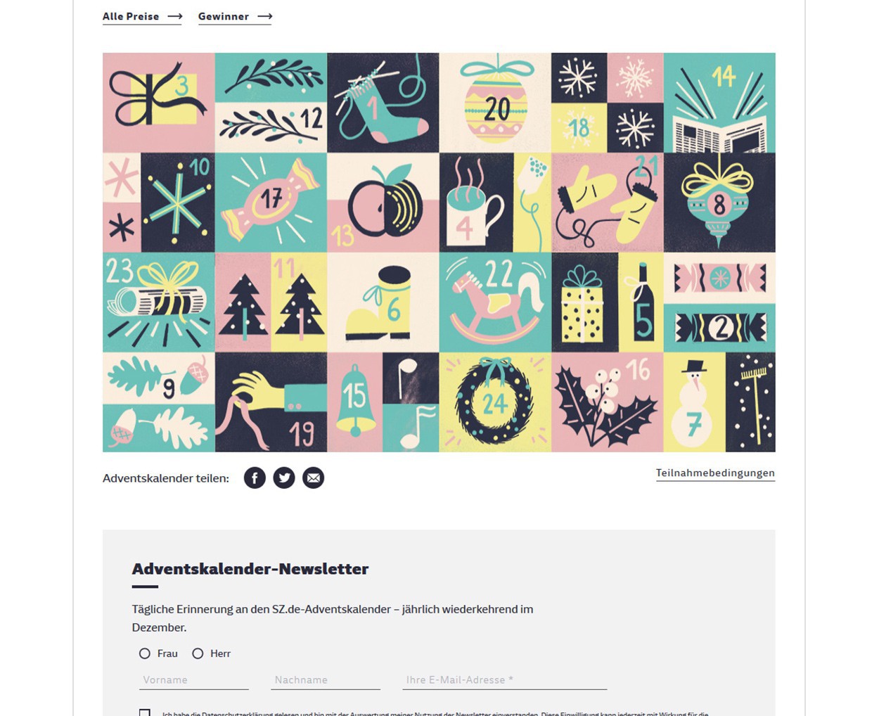 Sueddeutsche.de Advent calendar Interactive calendar with exciting prizes