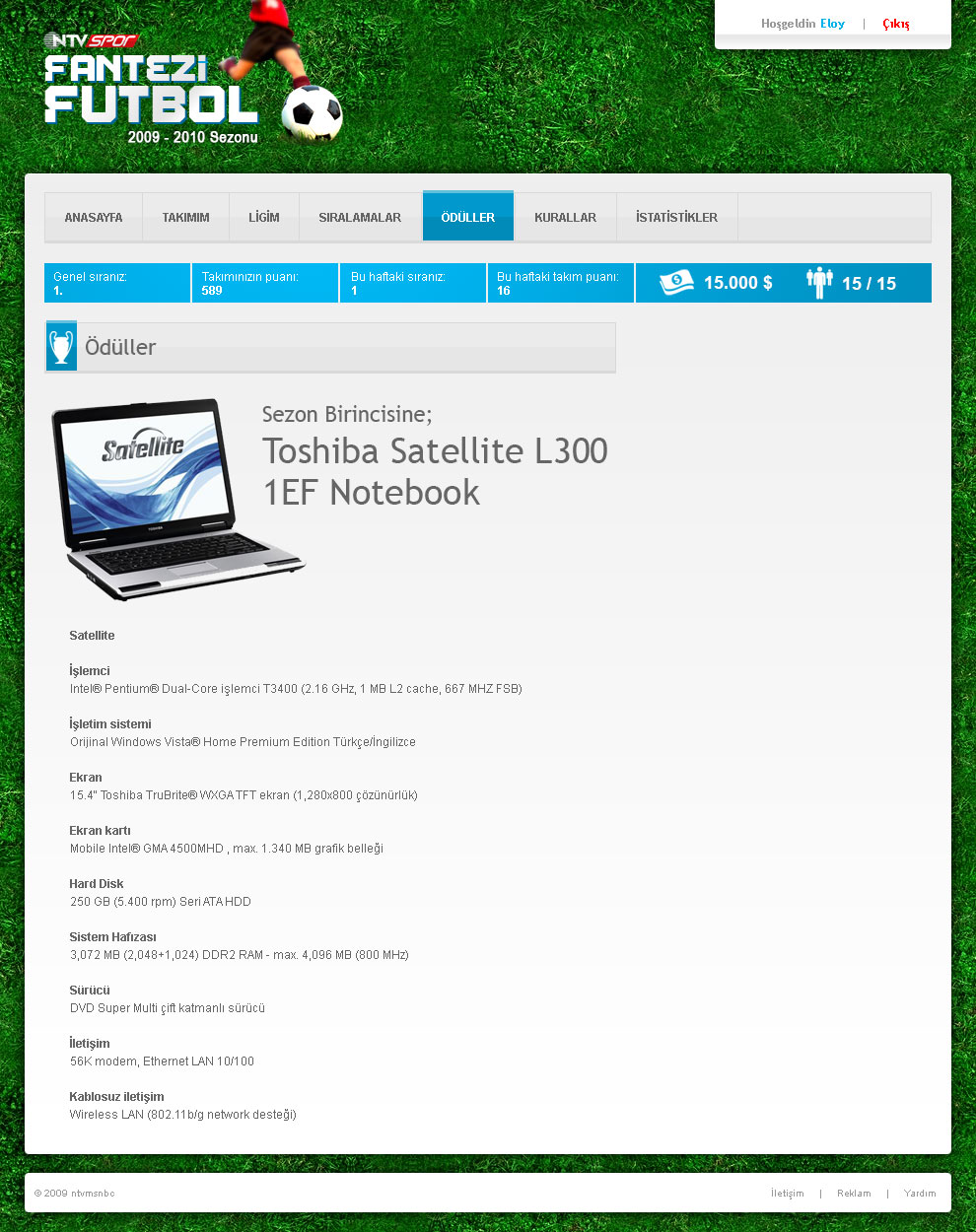 The Turkish football league is the subject of this project – as usual, users may assemble their team of players from the real Turkish Premier League. The game has a stunning Web 2.0 visual appearance and brilliant usability."